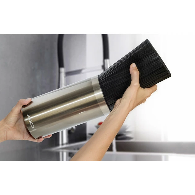 Elégant, ce range couteaux universel sublimera votre plan de travail tout en contenant et protégeant vos couteaux de cuisine dotés d’une lame de 20 cm (au maximum). Elaboré en acier inoxydable, ce bloc de qualité et durable, a l’avantage d’être particulièrement résistant, ce qui vous permettra de le placer n’importe où dans votre cuisine et d’y avoir accès simplement pendant que vous cuisinez ! L’intérieur de ce bloc à couteaux Arcos est amovible et réalisé en fibres de polypropylène ce qui vous permettra de le laver facilement pour une conservation toujours optimale de vos couteaux !