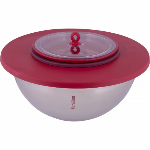Le couvercle rouge du cul de poule 5 en 1 Terraillon peut s’utiliser en complément du couvercle transparent. Grâce ce dernier, le couvercle est entièrement hermétique : vous pourrez conserver votre préparation au froid ou à température ambiante sans crainte qu’il ne prenne les odeurs ou qu’un corps étranger tombe dedans.